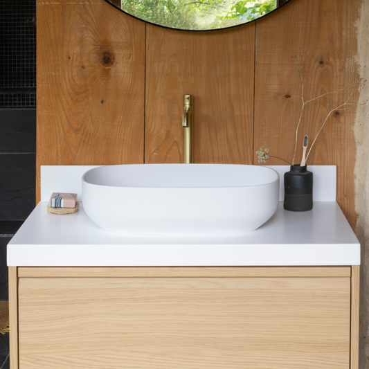 Malo, le plan avec vasque ovale posée, en Solid Surface