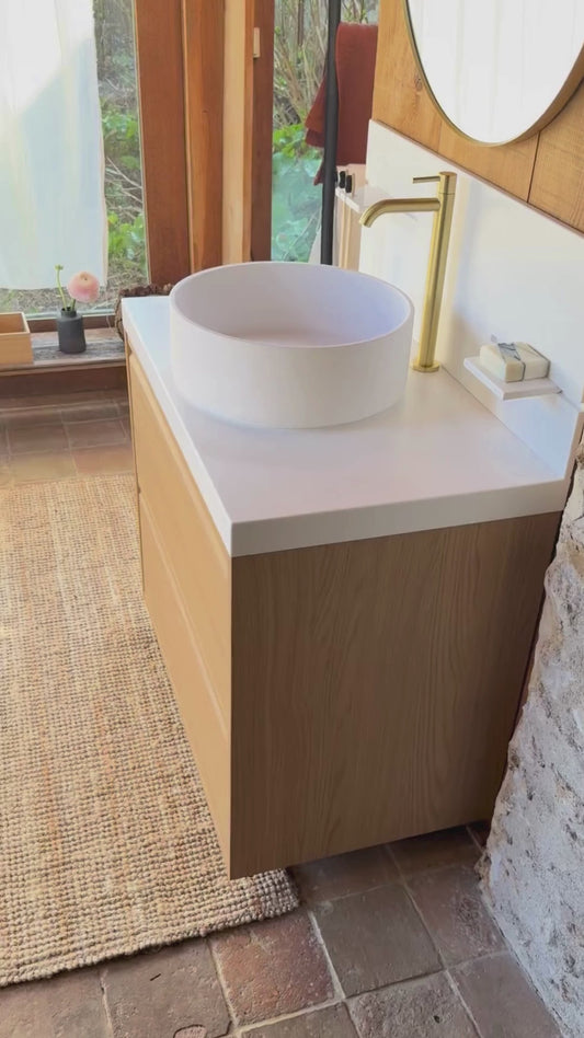 Paul, le plan avec vasque ronde posée en Solid Surface